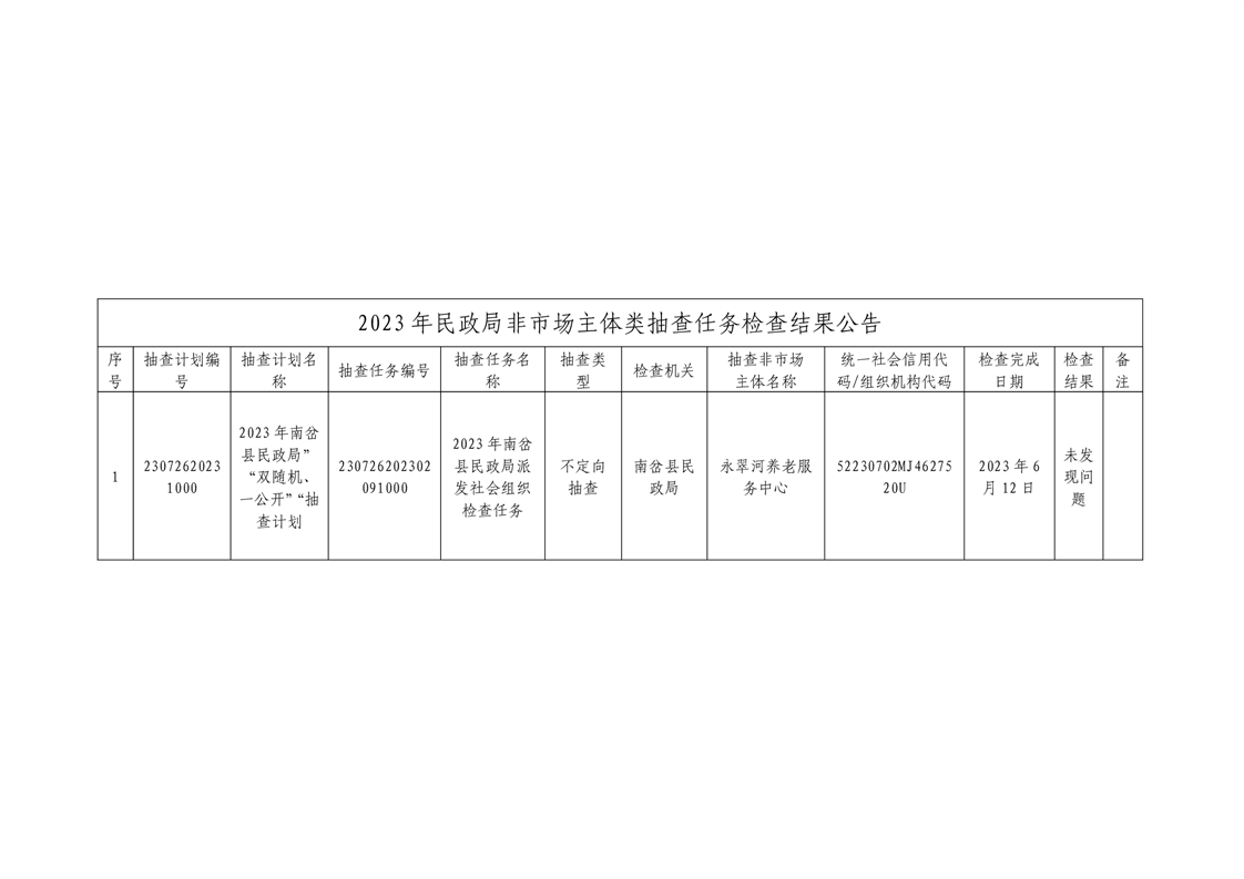 2023年南岔县民政局非市场主体类抽查任务检查结果公告