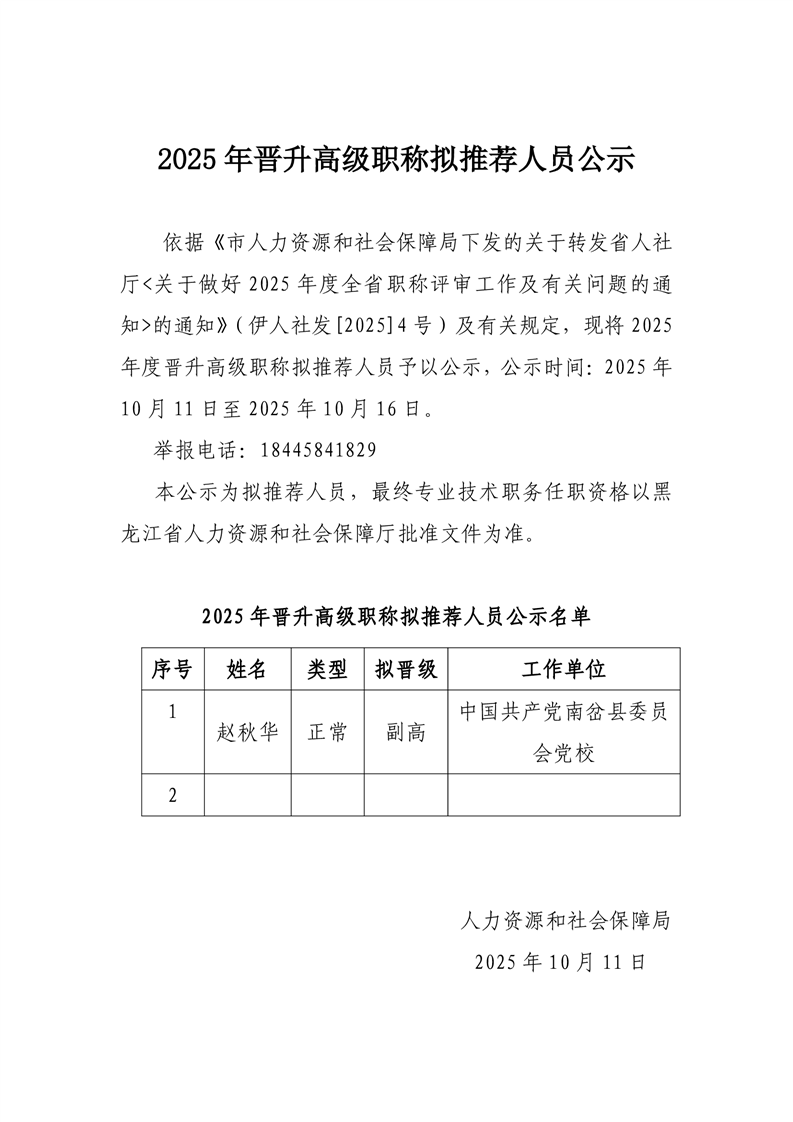 2025年晋升高级职称拟推荐人员公示