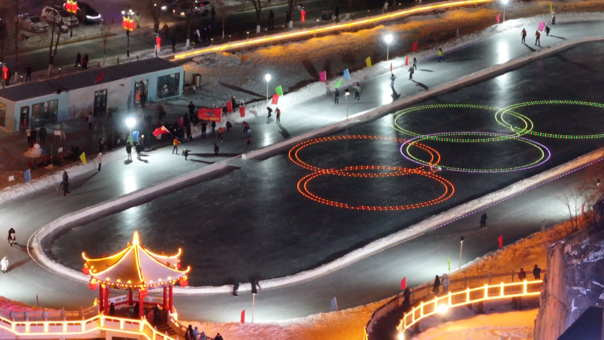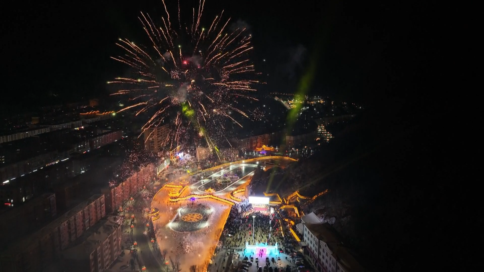 开幕式现场彩龙腾飞、音乐激昂,热场演出、民俗文化展演、烟花秀、百人速滑表演、抽冰尜比赛、蹦迪嗨玩互动等环节精彩呈现,营造了热烈的冰雪节庆氛围。活动还设置了民俗美食区、九珍十八品展销区供游人和市民品尝和选购。国家级非物质文化遗产《森林号子》以舞蹈表演的形式演绎了林区伐木工人不畏艰难、昂扬向上的精神风貌,为游客和市民带来了沉浸式的非遗民俗体验,将现场氛围推向高潮。大家纵情欢笑、赏雪景看焰火品美食并互相拍照留念,用镜头捕捉精彩时刻,尽享冰雪之美。