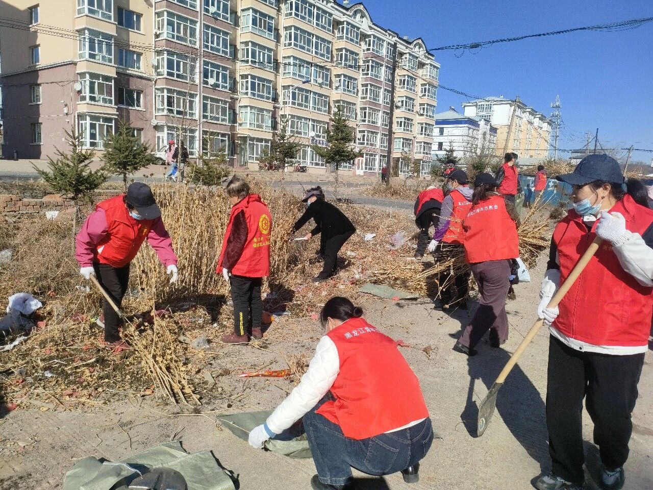 南岔县浩良河镇富强社区新时代文明实践站开展“净城靓城焕新颜”环境美化新时代文明实践活动