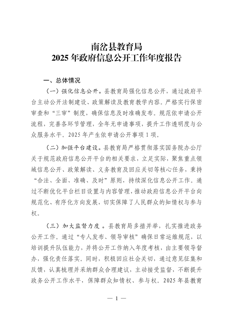 南岔县教育局2025年政府信息公开工作年度报告
