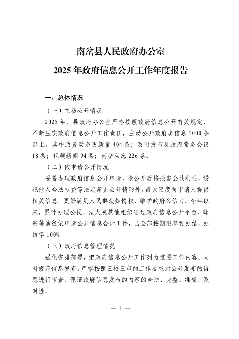 南岔县人民政府办公室2025年政府信息公开工作年度报告