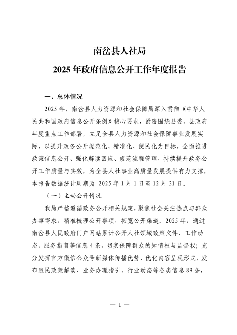 南岔县人社局2025年政府信息公开工作年度报告