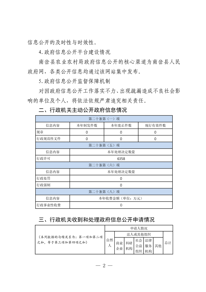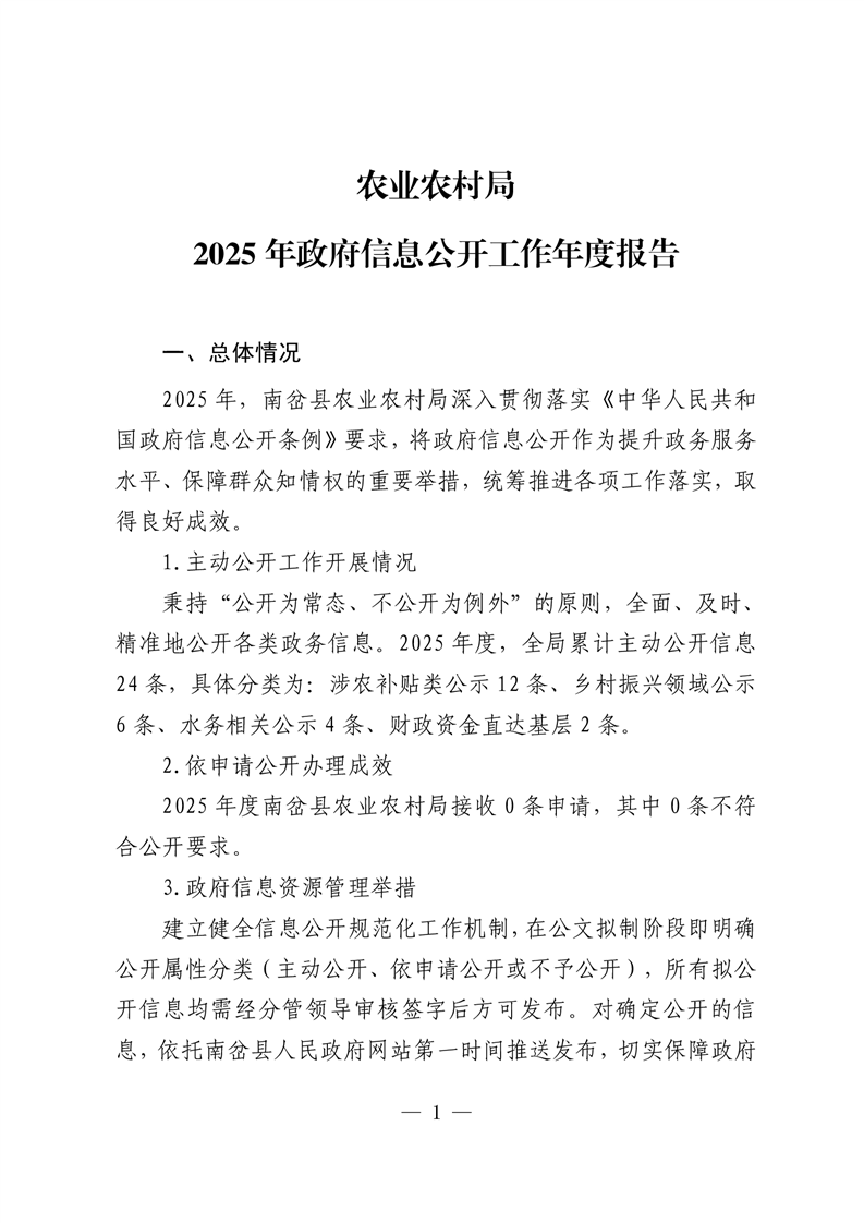 南岔县农业农村局2025年政府信息公开工作年度报告