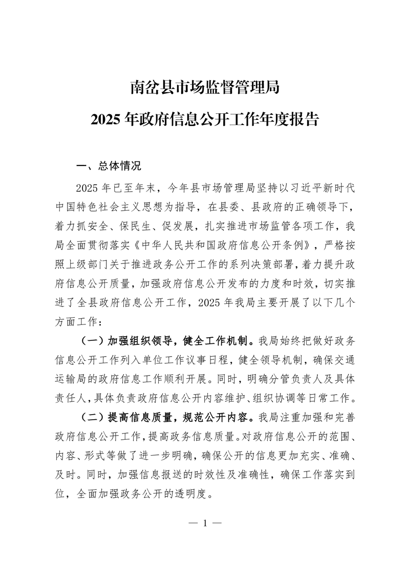 南岔县市场监督管理局2025年政府信息公开工作年度报告