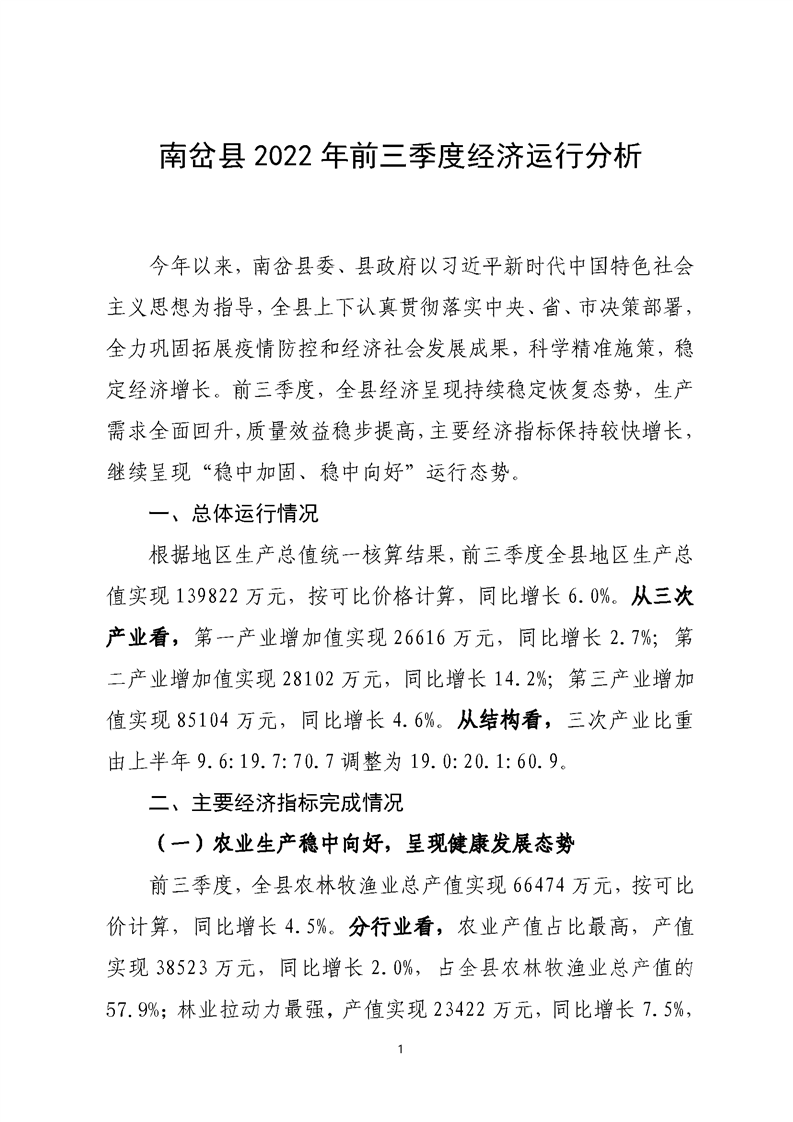 南岔县2022年前三季度经济运行分析