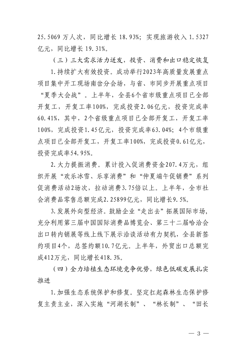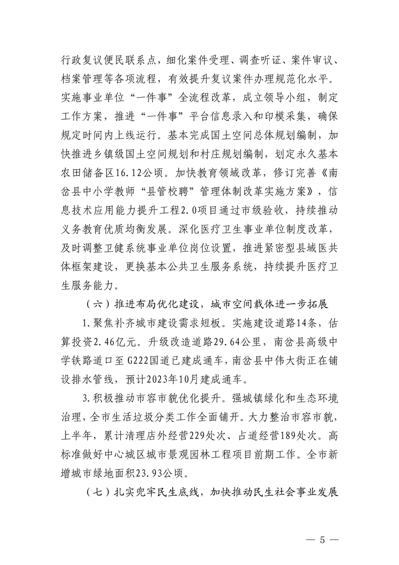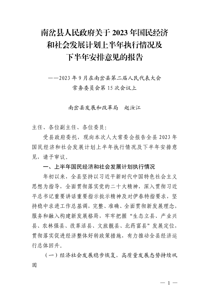 关于2023年国民经济和社会发展计划上半年执行情况及下半年安排意见的报告