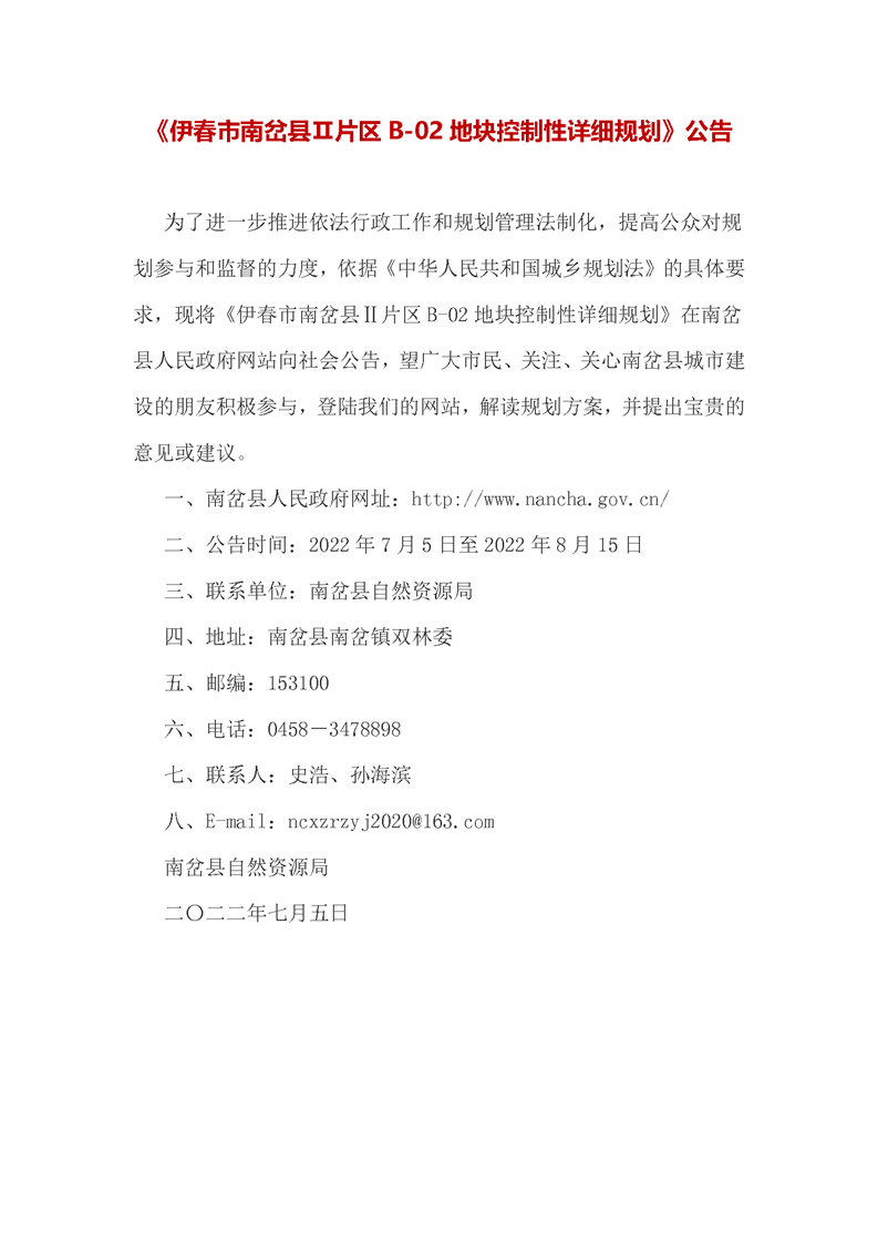 《伊春市南岔县Ⅱ片区B-02地块控制性详细规划》公告.docx
