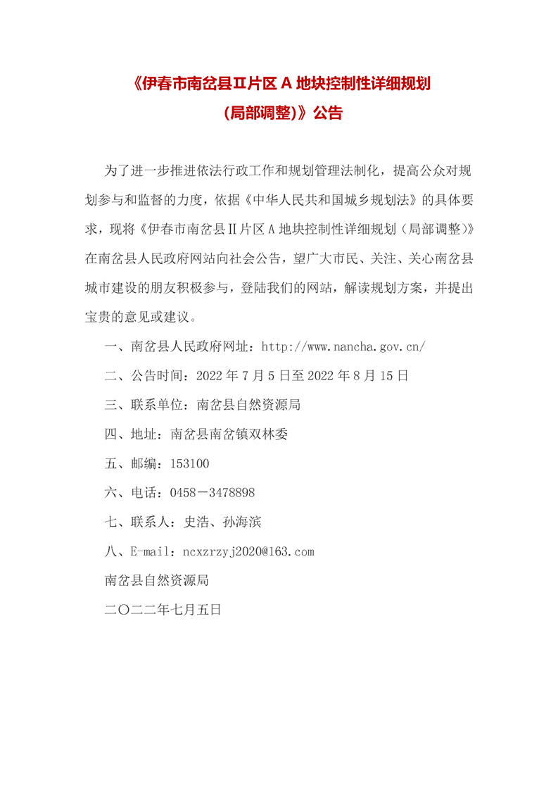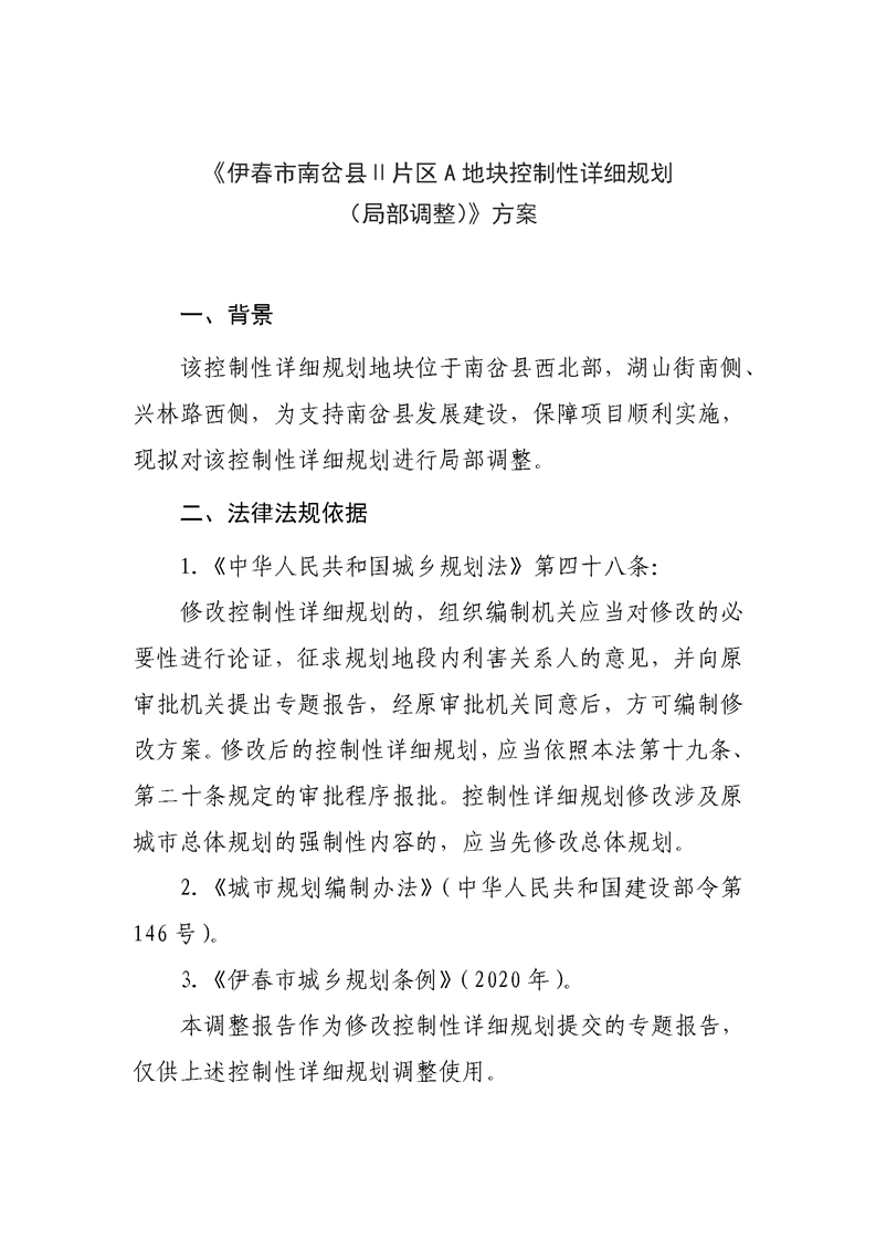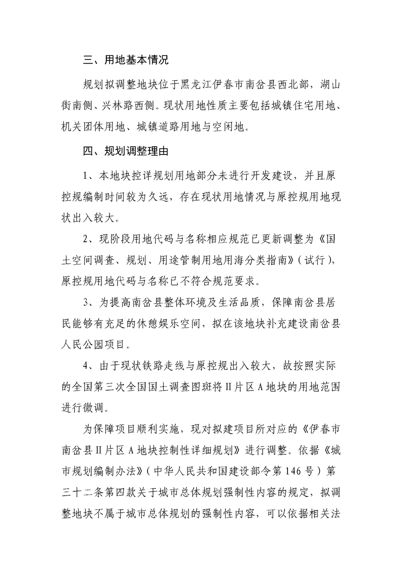《伊春市南岔县Ⅱ片区A地块控制性详细规划 (局部调整)》公告