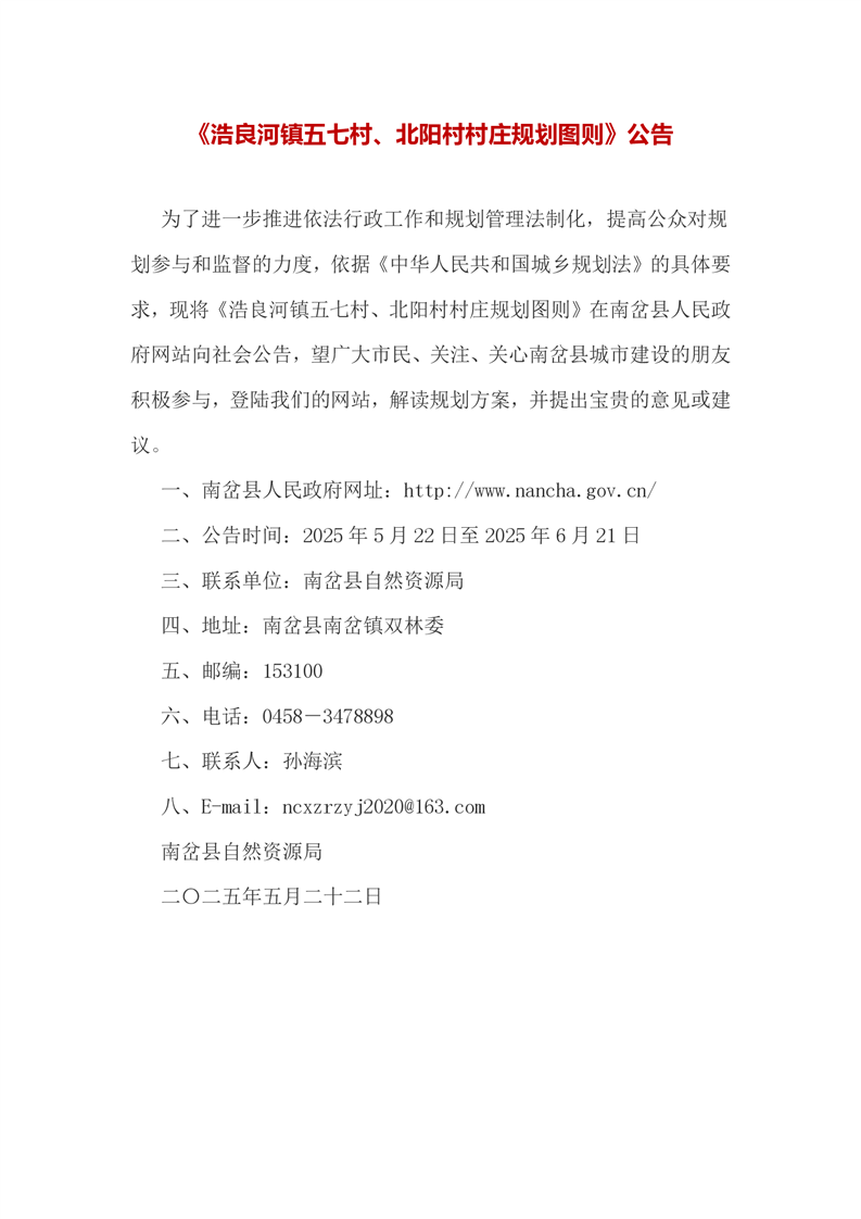 《浩良河镇五七村、北阳村村庄规划图则》公告