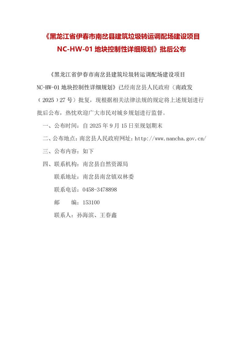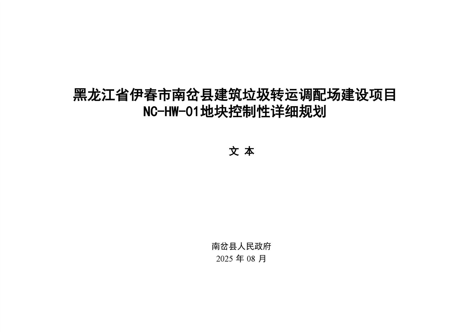 《黑龙江省伊春市南岔县建筑垃圾转运调配场建设项目NC-HW-01地块控制性详细规划》批后公布