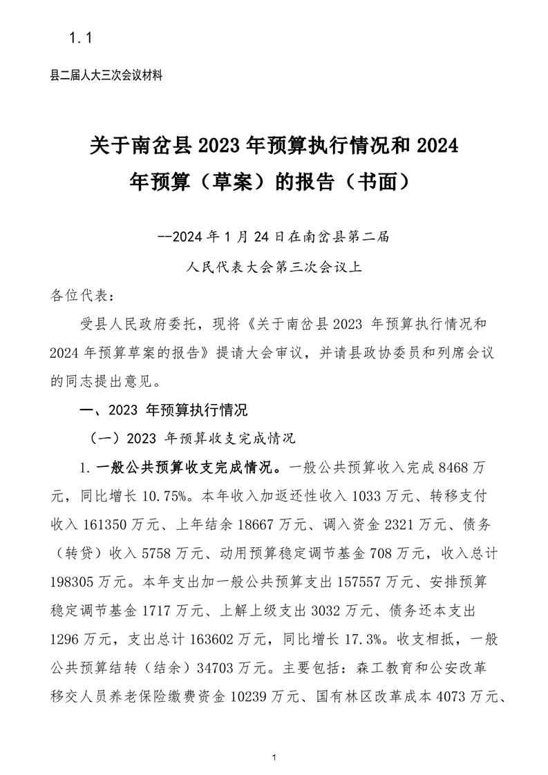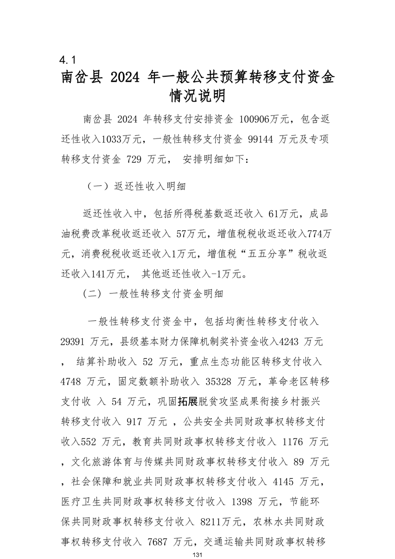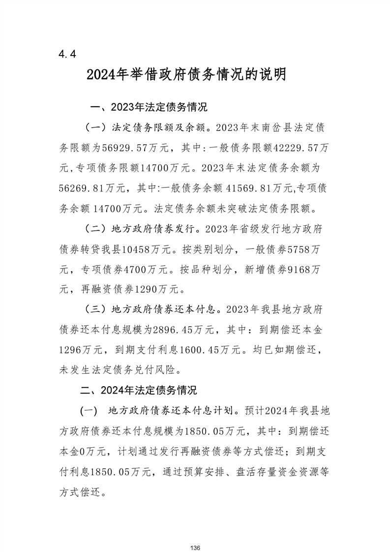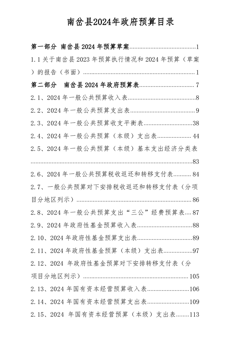 南岔县2024年政府预算公开