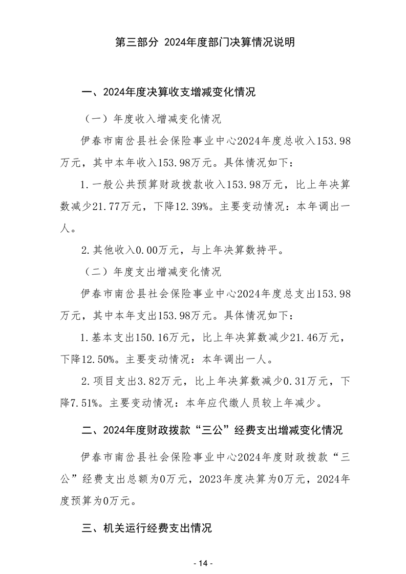 2024年度伊春市南岔县社会保险事业中心部门决算公开说明