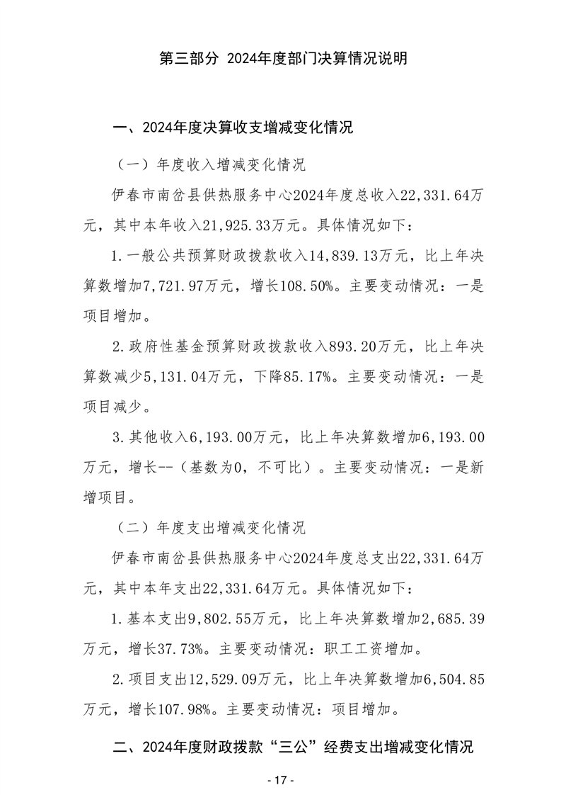 2024年度伊春市南岔县供热服务中心部门决算公开说明