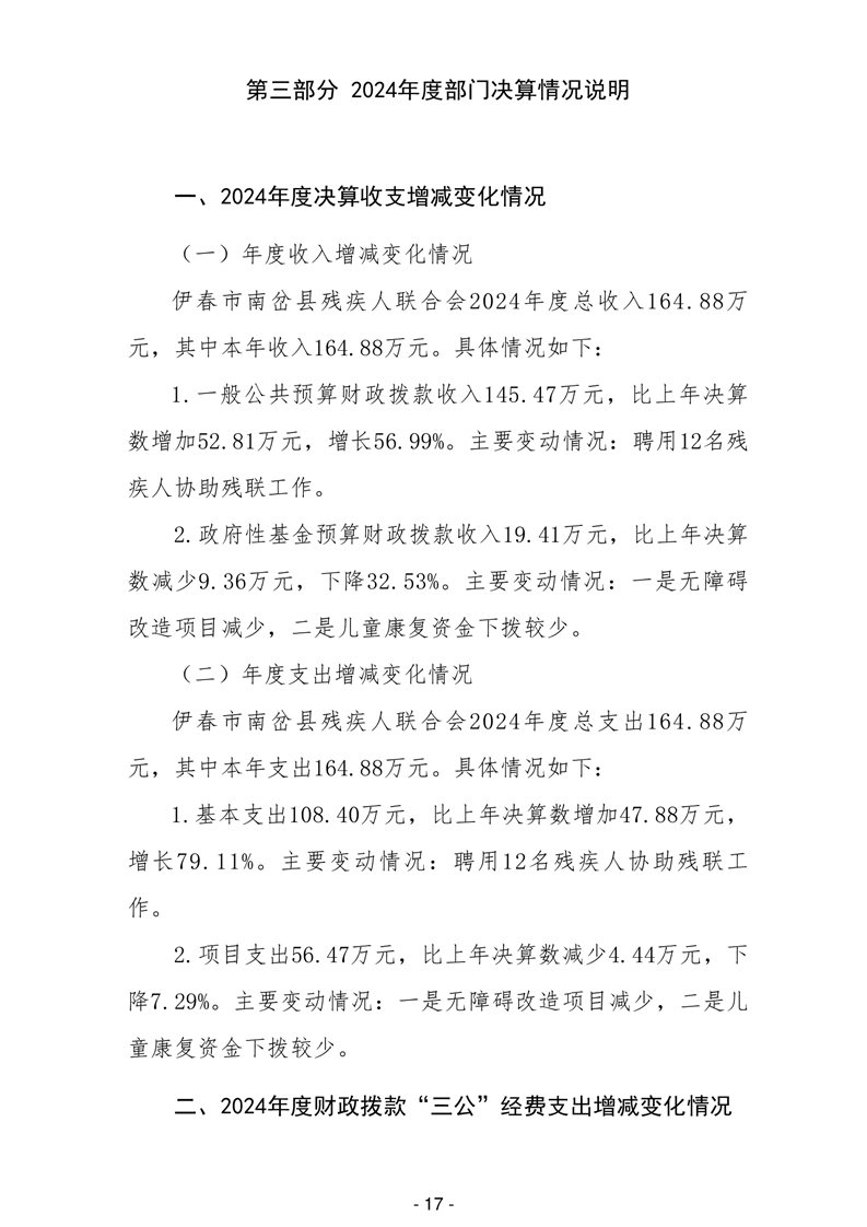 2024年度伊春市南岔县残疾人联合会部门决算公开说明