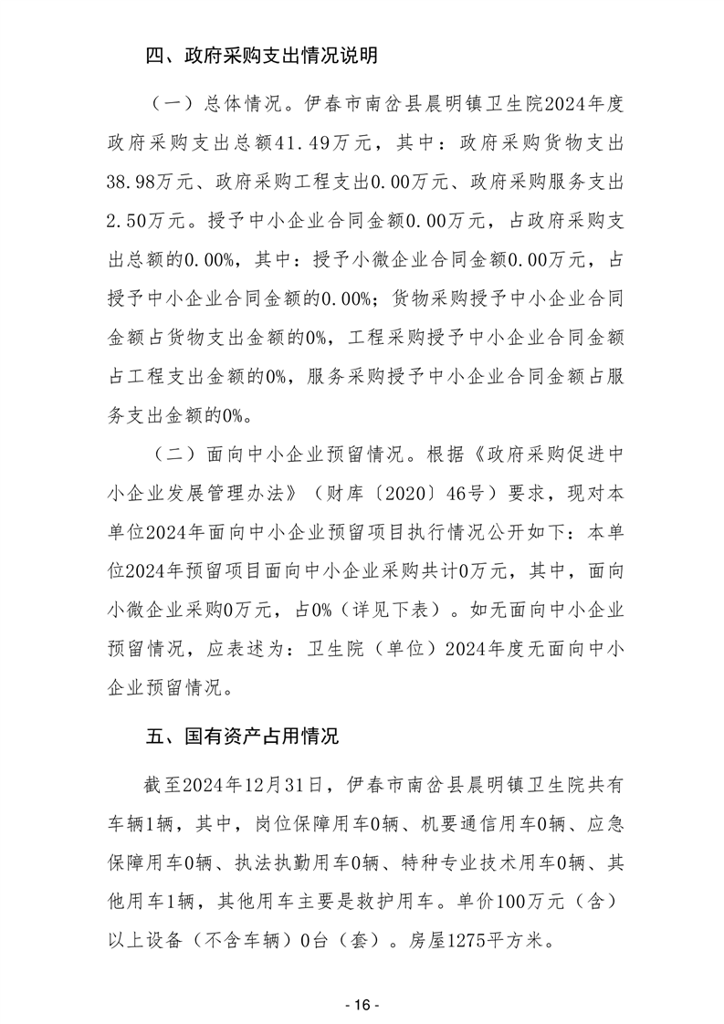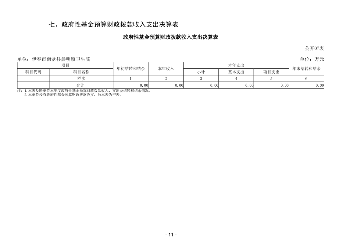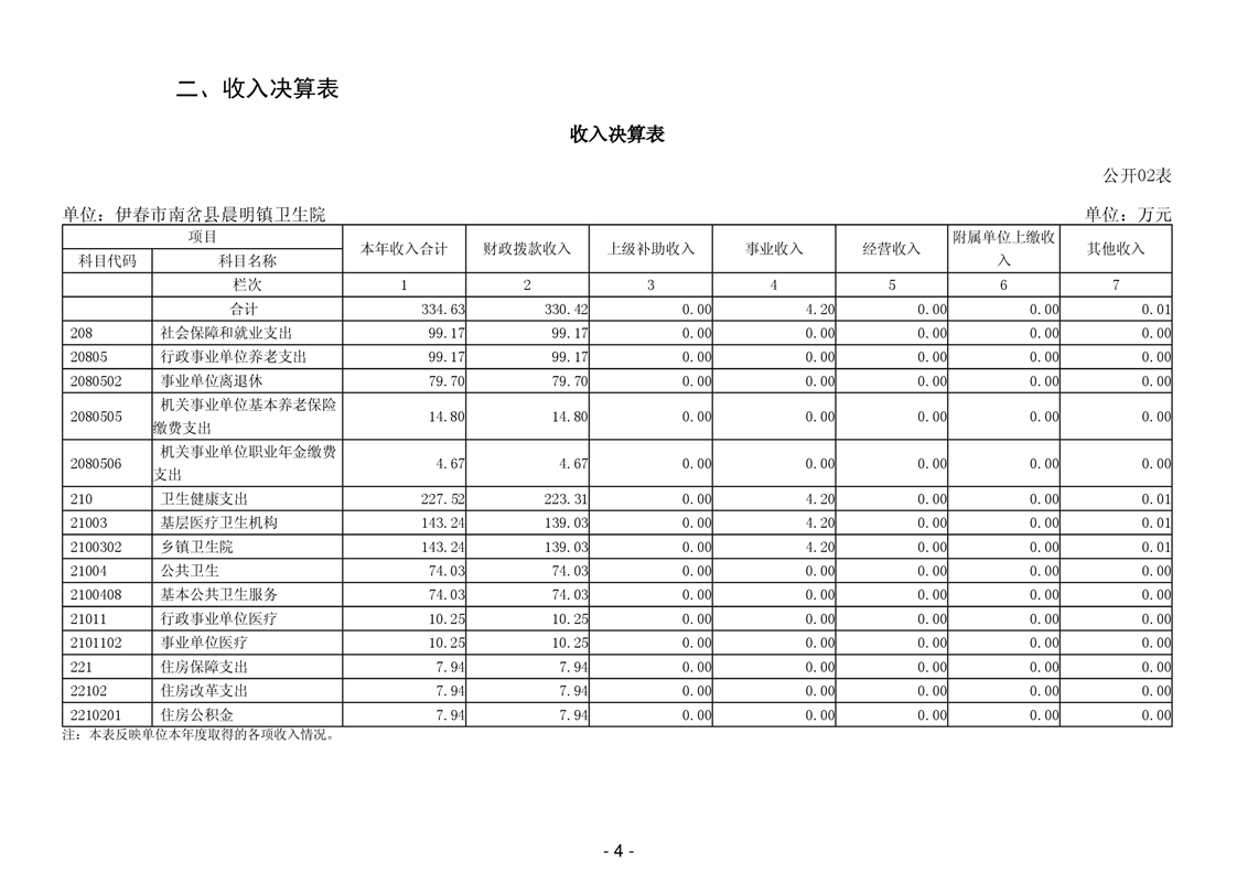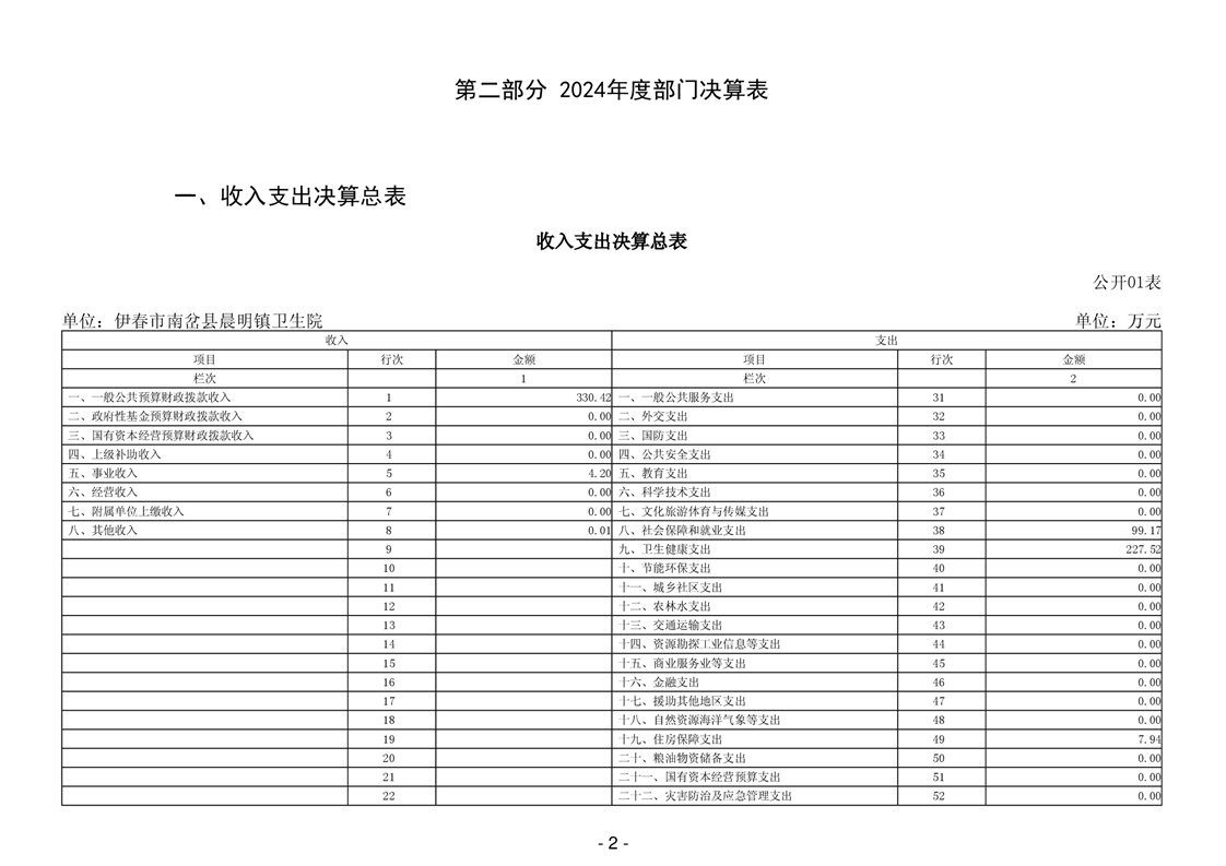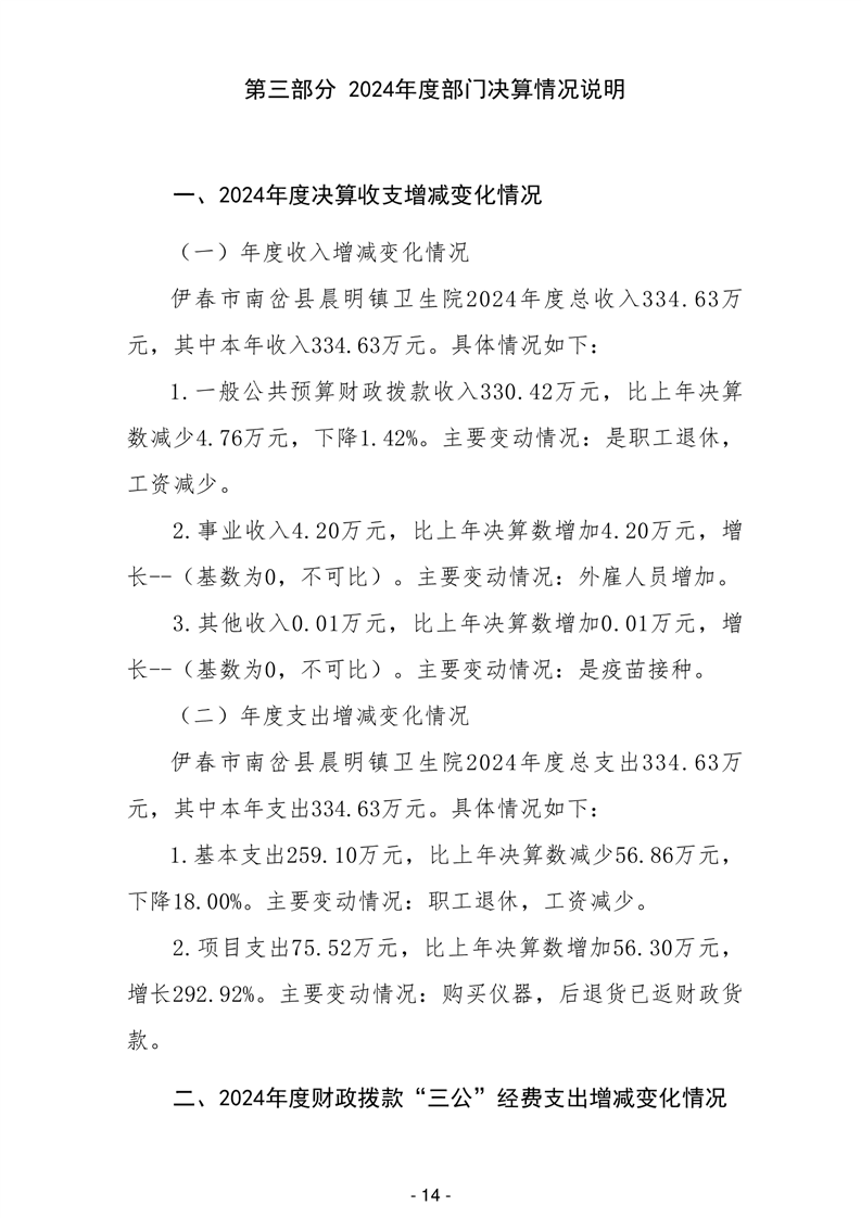 2024年度伊春市南岔县晨明镇卫生院部门决算公开说明
