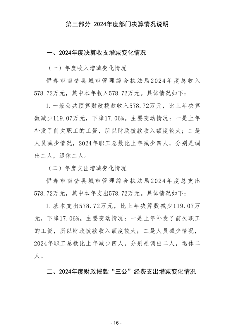 2024年度伊春市南岔县城市管理综合执法局部门决算公开说明