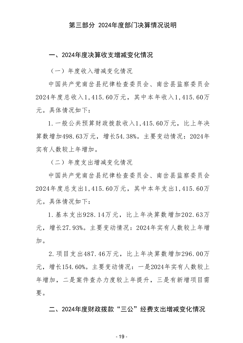 2024年度中国共产党南岔县纪律检查委员会、南岔县监察委员会部门决算公开说明