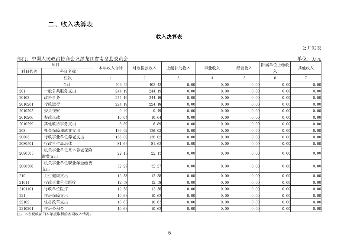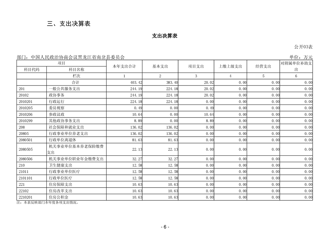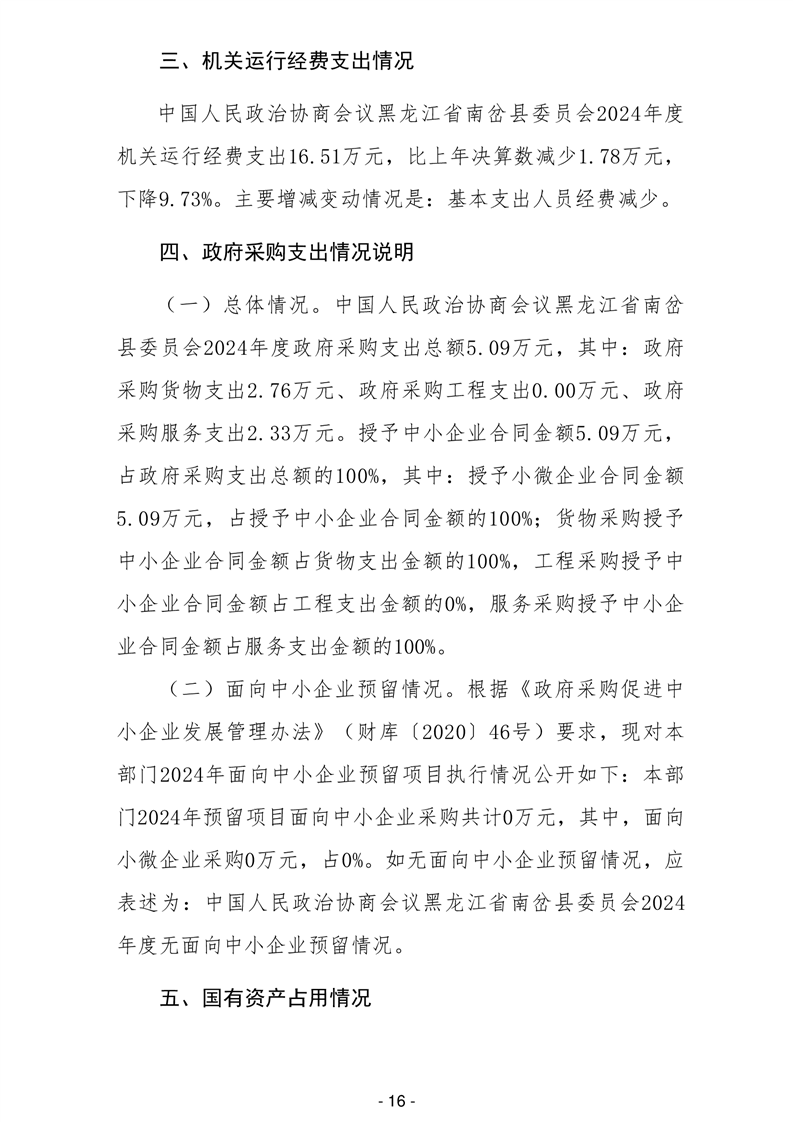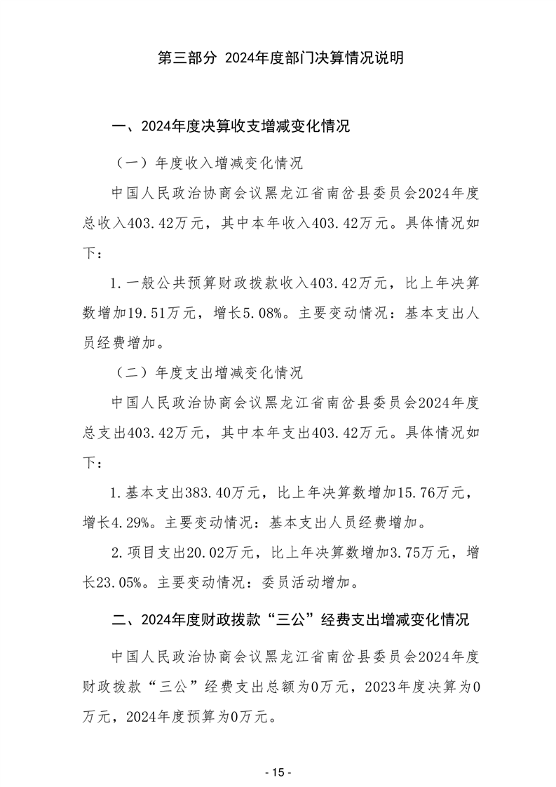 2024年度中国人民政治协商会议黑龙江省南岔县委员会部门决算公开说明