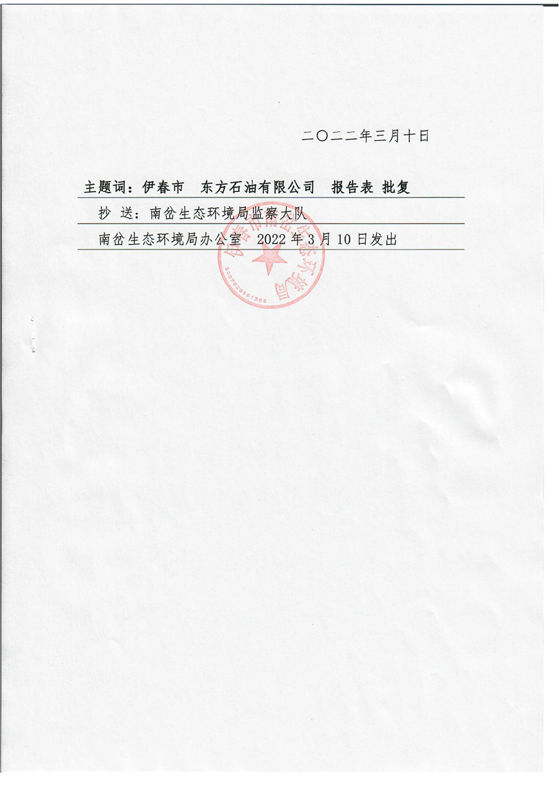 关于伊春市东方石油有限公司(加油站)建设项目环境影响报告表的批复.pdf