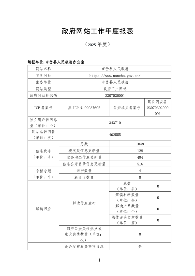 伊春市南岔县政府网站工作年度报表(2025年度)
