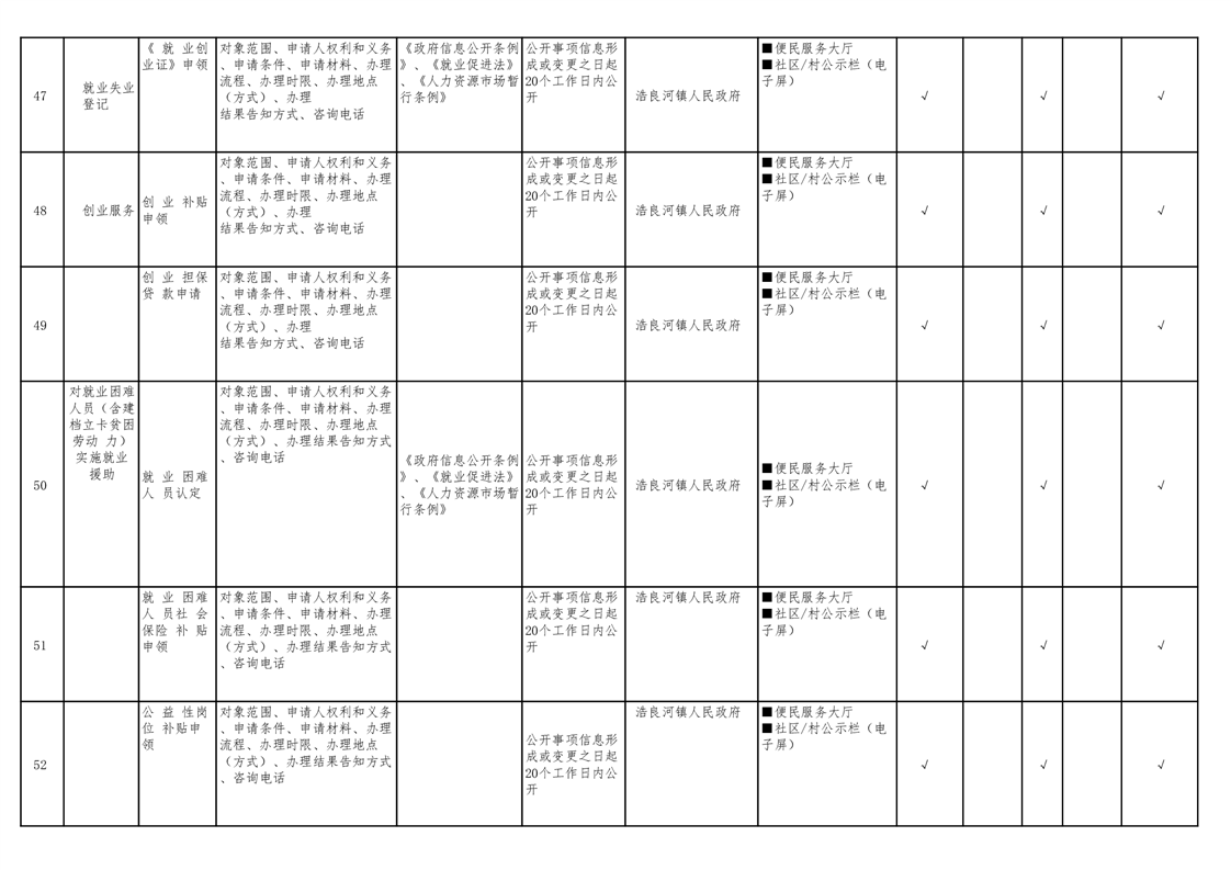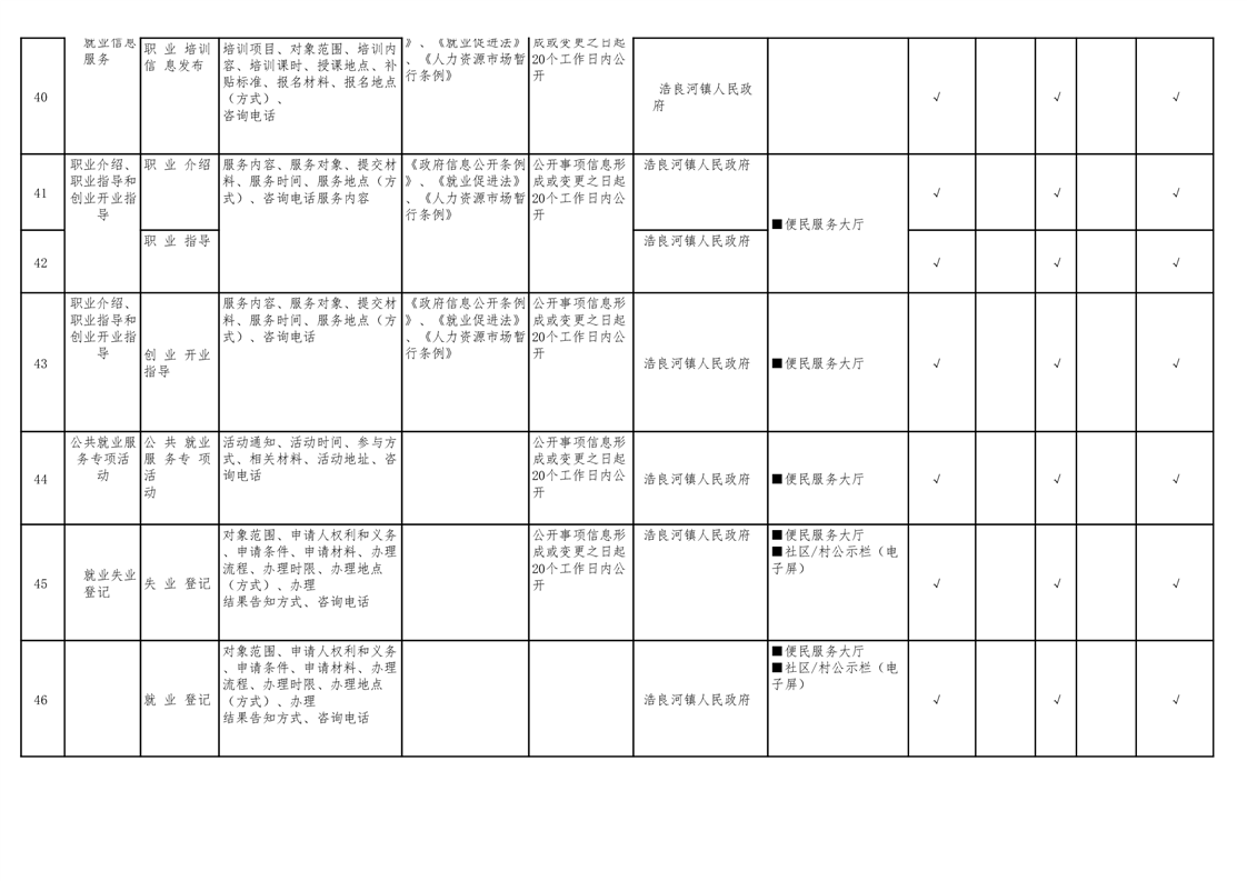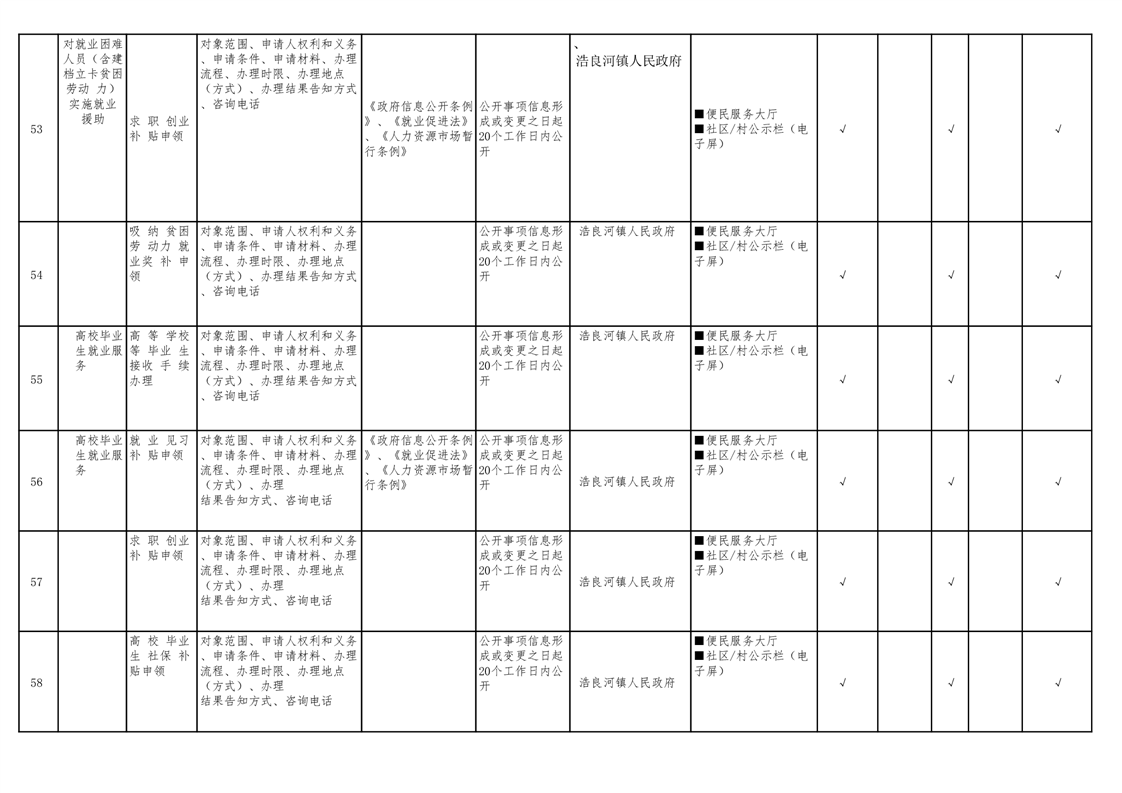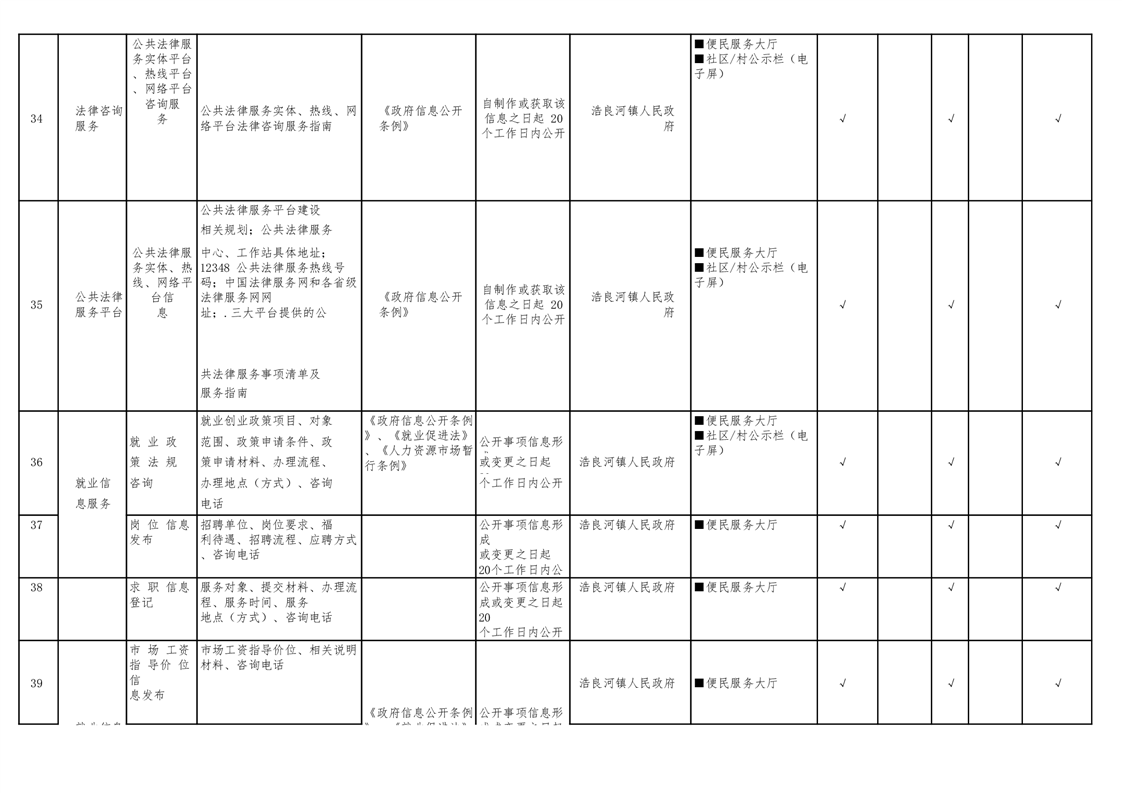 浩良河镇人民政府领域基层政务公开标准目录