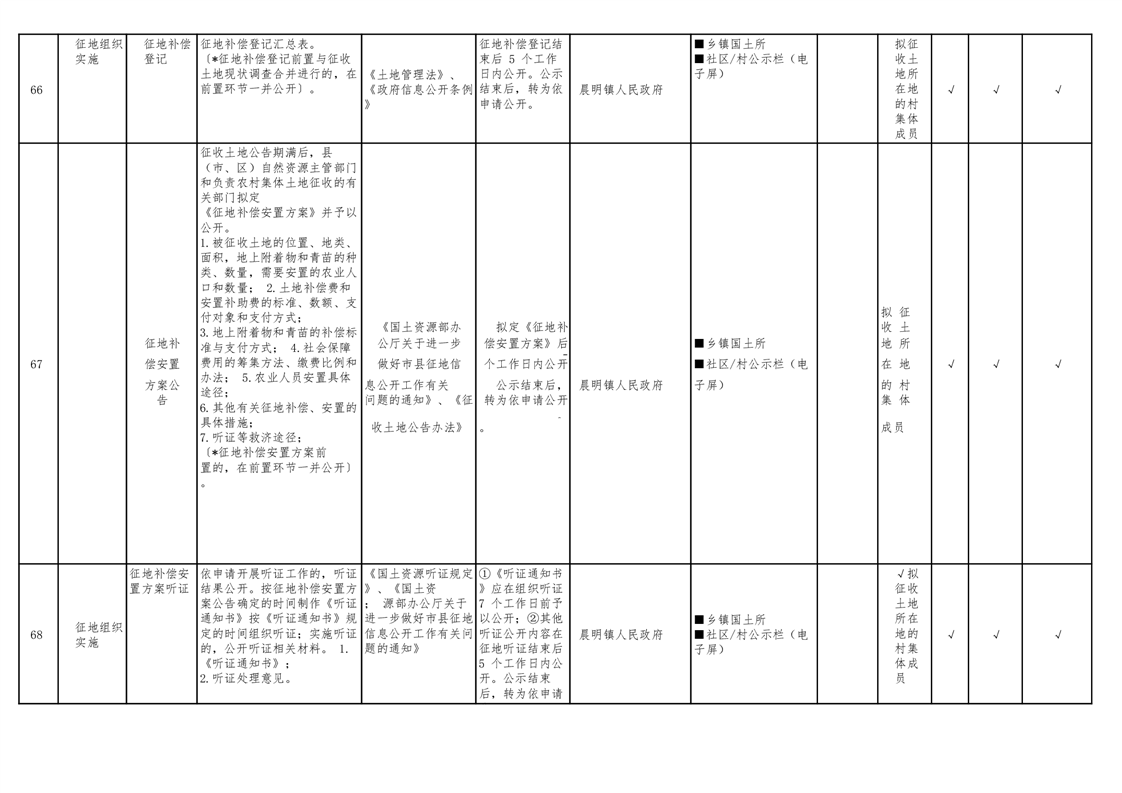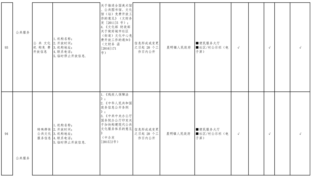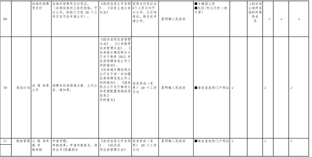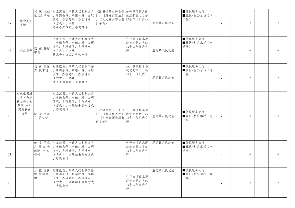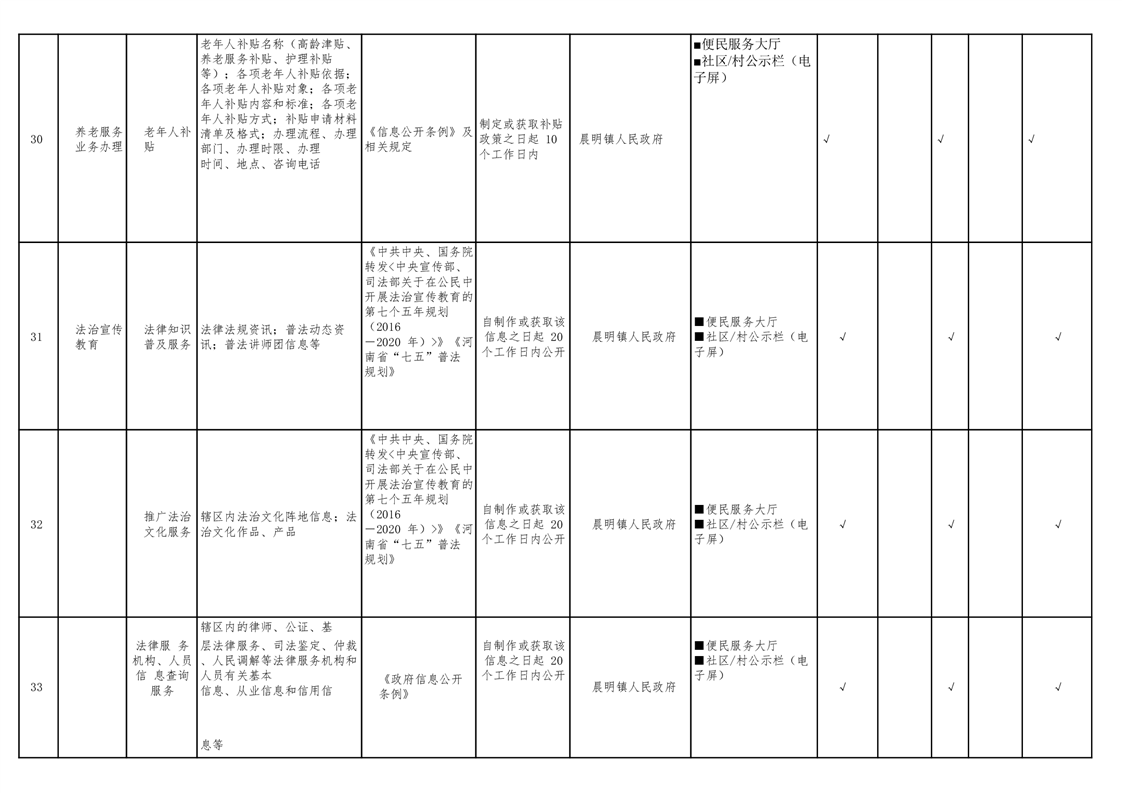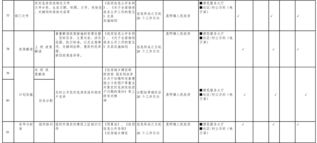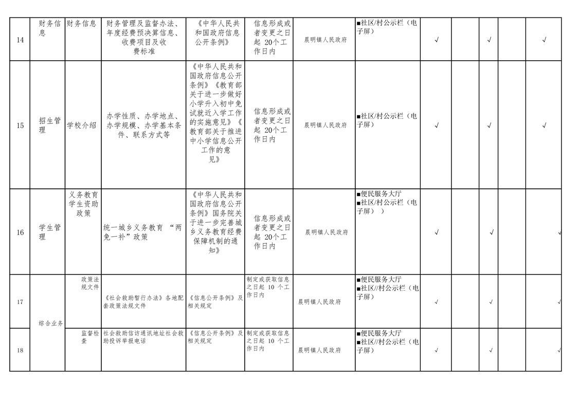 晨明镇人民政府领域基层政务公开标准目录